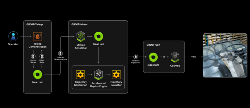 做为一项根本模子,GR00T N1的使用场景极为普遍,正在工业搬运、细密检测、物料包拆等分歧范畴都有优良的表示。通过实正在数据取合成数据,开辟者能够针对具体场景对GR00T N1完成后锻炼,使其适配多种复杂的使命需求。目前,Boston Dynamics(动力)、Agility Robotics、Mentee Robotics等多家领先机械人制制商曾经采用GR00T N1进行贸易化落地摆设。汇正财经资深研究员张轩正在接管采访时谈道:“GR00T N1为机械人具身智能时代的到来奠基了的根本。”他非分特别强调开源策略可能的庞大协同立异潜力,“模子的开源会降低开辟的门槛,推进手艺的普及和使用的多样化,同时也将推进机械人财产链的整合,鞭策创重生态的成立。”英伟达正在通用机械人范畴展现的“组合拳”远不止GR00T N1。现实上,黄仁勋提出的架构是,每家机械人公司最终都必需建立三台计较机。换言之,为了开辟人形机械人,需要三个加快计较机系统来别离处置机械人的锻炼、仿实和运转时(Run time,计较机法式从起头施行到终止施行的运做、施行的期间)。起首,前述提到的GR00T N1大模子,就属于锻炼模子的环节。开辟者能够正在英伟达平台上利用NVIDIA NeMo来锻炼和微调强大的根本和生成式AI模子,也能够间接利用GR00T N1模子。其次,英伟达的数字孪生平台Omniverse连系Cosmos平台,可以或许为测试和优化机械人供给开辟平台和仿实。就是正在虚拟数字世界中先建立出机械人,并进行“线上”考试。好比,借帮Omniverse和Issac Sim,开辟者可以或许正在更逼实的虚拟中对机械人进行锻炼、测试和验证,同时借帮Replicator SDK生成仿实数据。从而无效降服保守机械人锻炼中实正在数据缺失的痛点,大幅降低数据采集成本并加快模子的锻炼历程。从适用案例上看,智元机械人操纵Isaac Sim、GR00T-Teleop 和 GR00T-Mimic框架打制出一套高效的仿实数据采集方案,大幅提拔了数据生成效率。银河通用团队则借帮 Isaac Sim上的Isaac Lab组件搭建了一个大规模数据集DexGraspNet,此中包含132万个ShadowHand对5355个物体的抓握动做,数据的质量和多样性都获得提高。
