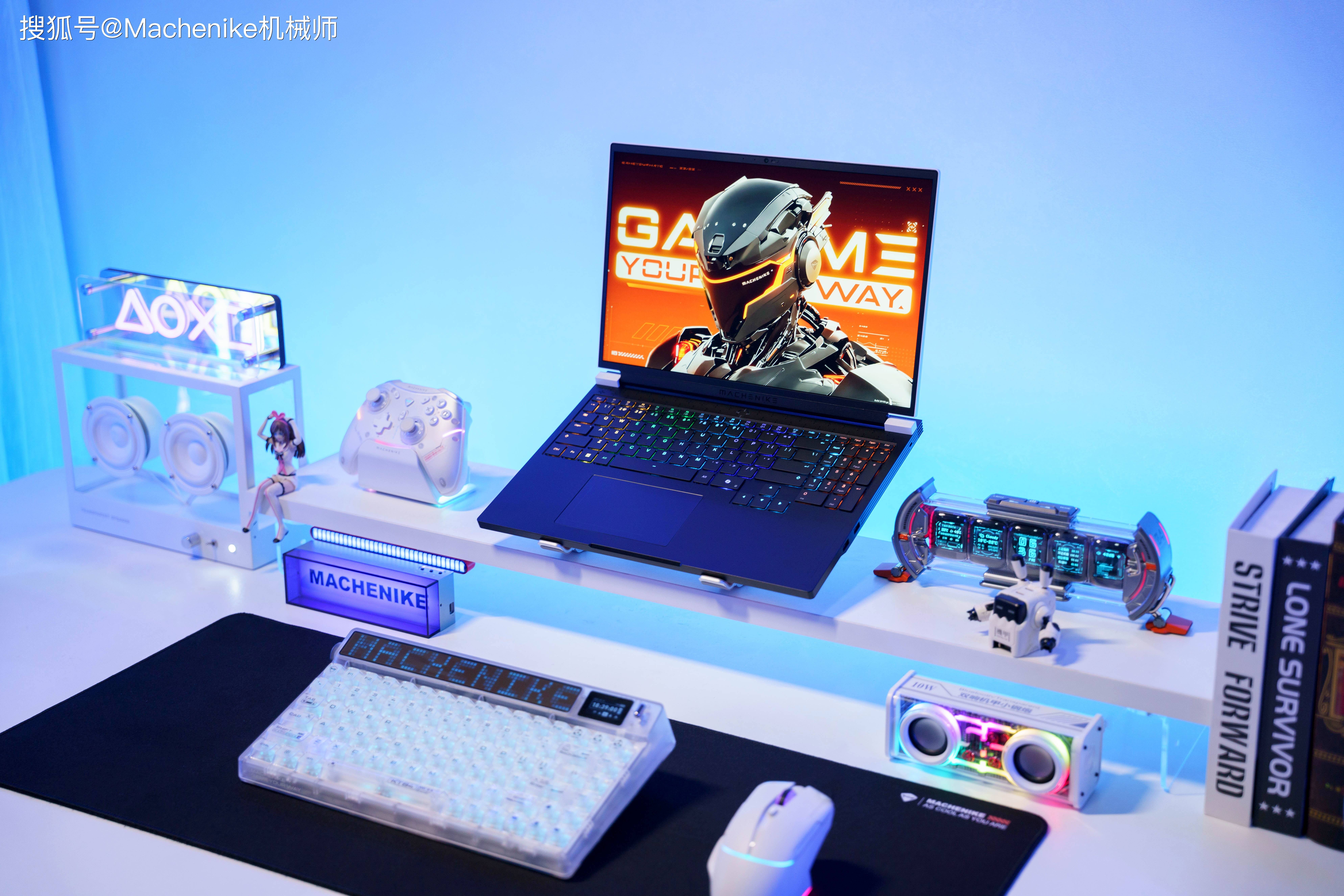 外部采用将来曙光 ID 设想,左侧配备 MACHENIKE 流光铭牌,支撑 230W 零件。此外该逛戏本搭载了单键 RGB 背光键盘和类玻璃触控板,内置 80Wh 电池。