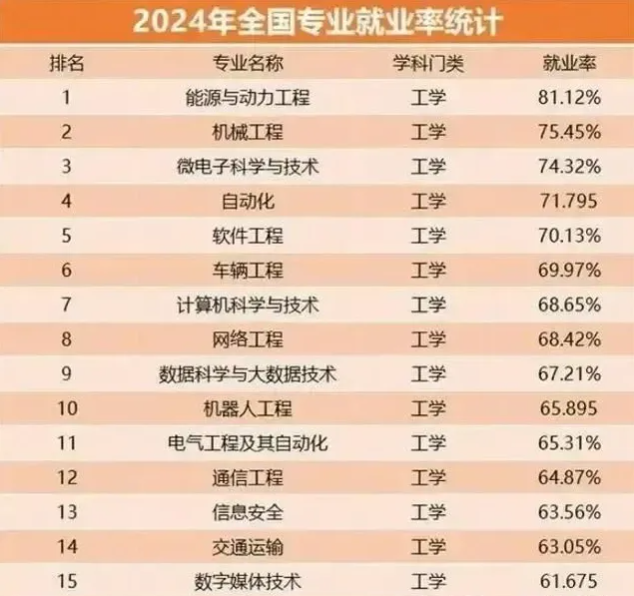 凡是来说,专业的黑白间接影响到未来的就业面广度。很多公司校招筛选人才,前段时间,一张名为“2024全国专业就业率”的统计图正在网上惹起热议,此中排名前16的全数为工科类专业。