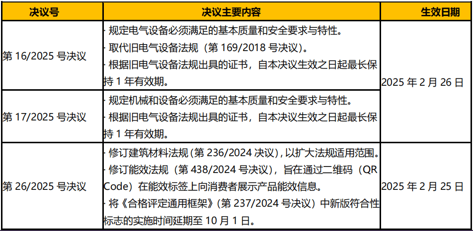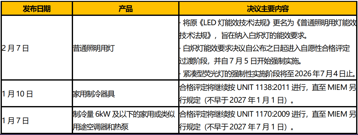 乌拉圭工业、能源取矿业部(MIEM)于2025 年1 月以来发布多项能效要求相关决议,见表2。