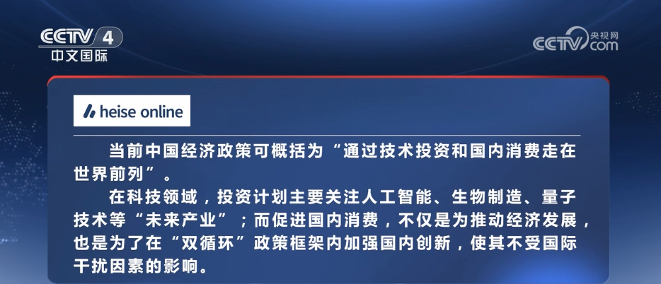 《海泽正在线》网坐近日报道指出,当前中国经济政策可归纳综合为“通过手艺投资和国内消费走界前列”。正在科技范畴,投资打算次要关心人工智能、生物制制、量子手艺等“将来财产”;而推进国内消费,不只是为鞭策经济成长,也是为了正在“双轮回”政策框架内加强国内立异,使其不受国际干扰要素的影响。国度成长委副从任李春临正在3月17日国务院旧事办旧事发布会上谈及为鞭策消费升级,《提振消费专项步履方案》将从三个方面发力,此中之一即是以手艺牵引培育消费新增加点,打通手艺落地堵点,推进新型消费加速成长,